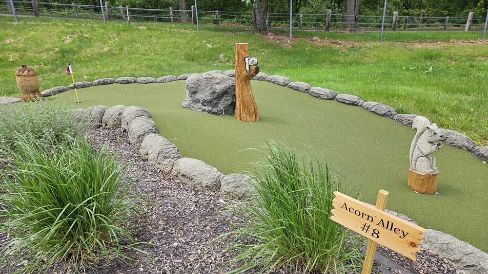 If you played the course early in the redo, there wasn’t a lot to it. It was a generic adventure golf course with just some posts and rocks as obstacles. You would walk over to the golf shop to make your payment and grab your gear. During 2025 they made some significant changes to the course adding woodcut animals throughout and providing a theme to each hole around those animals. It didn’t change much the gameplay as the obstacles were all the same but gave it an atmosphere boost from a visual capacity. In addition, during the summer they added a self-service kiosk by the course for you to pay and get your ball from a vending machine (the clubs were there too though we bring our own). It is an interesting idea except for the fact that each ball comes out in a sleeve that is designed for three balls which seems to be a waste of material where it could just vend individually like we have seen at other courses.